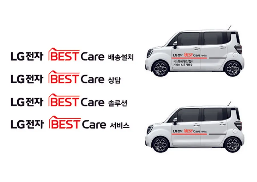 LG전자는 새로운 서비스 브랜드 확산을 위해 최근 서비스 차량 2000대에 브랜드 랩핑을 새로 했다. ▲배송 차량 ▲유니폼 ▲명함 ▲명찰 등에도 신속히 적용해 고객에게 통합 서비스 브랜드를 알릴 계획이다.