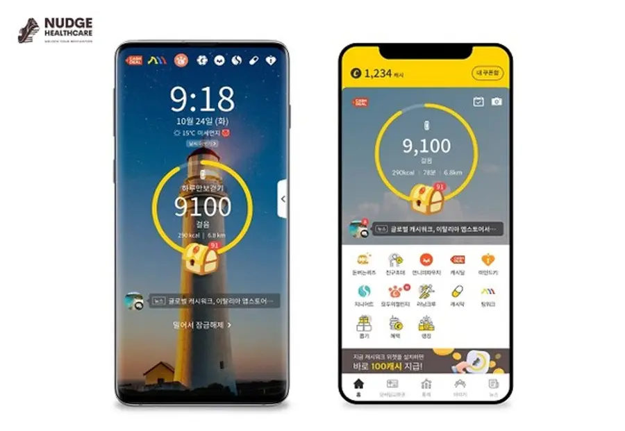 한편, 넛지헬스케어의 건강관리 앱 캐시워크는 누적 다운로드 수 2100만 건과 일간 활성 이용자 수(DAU, Daily Active Users) 360만을 명을 돌파한 국민 건강관리 앱이다.