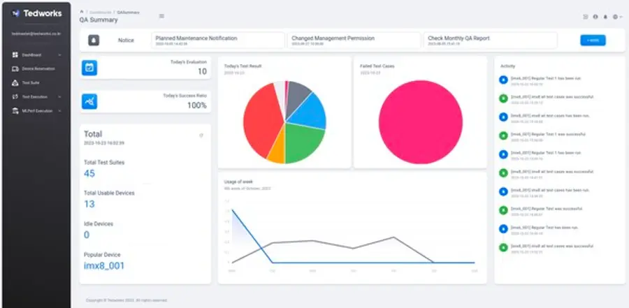 테드웍스는 가상화 기술 기반으로 불필요한 제어용 PC없이 DUT(Device Under Test)에 집중할 수 있도록 고안됐다. 반도체 개발 현장 내 ▲개발보드 및 레거시보드의 운영 환경을 고려한 다양한 검수 환경 구축 ▲분산된 팀의 하드웨어/보드 이용을 위한 물리적 리소스 필요 ▲글로벌 협업 시 테스트용 하드웨어/보드의 배송 및 추적 관련 시간 및 비용 투자 ▲통합 테스트에서 발견되는 결함의 원인 추적 어려움 ▲CI/CT에 필요한 테스팅 리소스 부족 등의 주요 문제 등을 해결하는데 최적화된 솔루션이다.