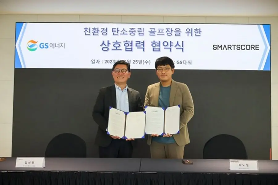 스마트스코어(대표 정성훈)는 지난 25일 GS에너지(대표 허용수)와 친환경 탄소중립 골프장 구축을 위한 업무협약(MOU)를 체결했다고 26일 밝혔다. 업무협약은 스마트스코어의 박노성 부대표와 GS에너지의 김성원 부사장이 서명하였고, 양사 임원이 참석하였다.