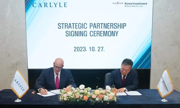 한국투자증권(사장 정일문)은 세계 최대 규모 사모투자펀드(PEF) 운용사 중 하나인 칼라일그룹과 장기적인 파트너 관계 구축을 위한 전략적 제휴를 체결했다고 27일 밝혔다.