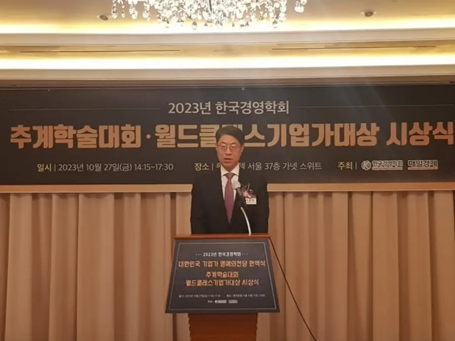 제1회 '대한민국 월드클래스기업가 대상'에 이준혁 동진쎄미켐 대표이사 부회장(사진)이 선정됐다. 월드클래스기업협회는 지난 27일 롯데호텔에서 열린 한국경영학회 주최 '경영학자 선정 대한민국 월드클래스기업가 대상‘ 시상식에서 이준혁 동진쎄미켐 대표이사 겸 월드클래스기업협회장이 대상을 수상했다고 30일 밝혔다.