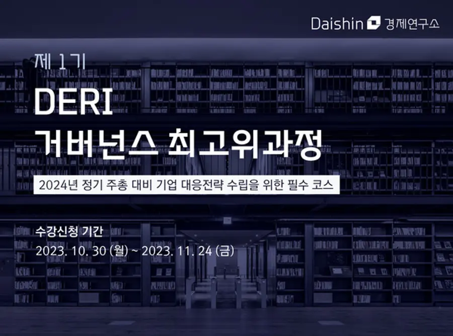 대신경제연구소는 30일 상장회사 임직원을 대상으로 거버넌스 전문가 양성을 위한 ‘제1기 DERI 거버넌스 최고위과정’을 개설하고 11월 24일까지 수강생을 모집한다고 밝혔다.
