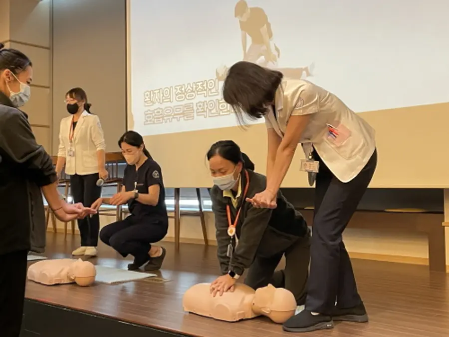 이번 심폐소생술 교육은 직원들의 응급상황 대처능력을 강화하고자 응급상황 발생 시 대처 요령, 심폐소생술 및 자동심장충격기 사용법, 기도 폐쇄 시 응급처치 요령 등의 교육을 실시하고 전직원이 직접 참여해 실습을 진행했다.