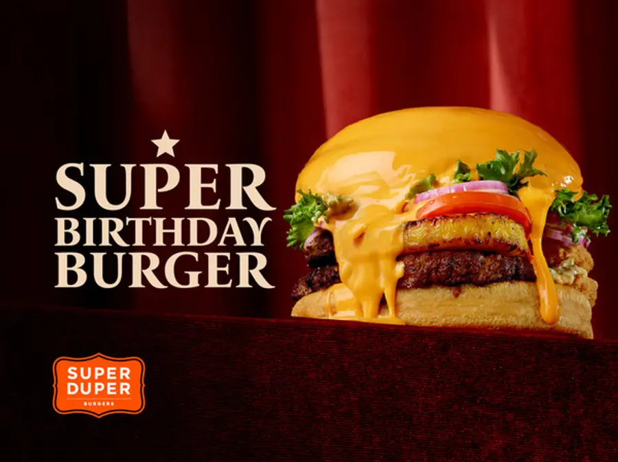 슈퍼두퍼의 인기 버거 3개를 합친 것과 맞먹는 크기로 출시된 ‘슈퍼 벌스데이 버거’는 패티 5장을 쌓아 올린 후 깊고 풍부한 맛의 멜팅 치즈 소스를 눈이 내리듯 가득 덮여 먹는 재미와 보는 재미를 느낄 수 있다. 특히 다양한 패티와 토핑으로 데리야끼 버거, 하와이안 버거, 더블 쉬림프 버거를 한 번에 맛볼 수 있는 것이 특징이다.