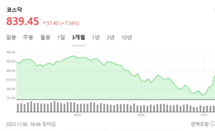 6일 코스피지수는 전거래일보다 5.66% 오른 2502.37포인트, 코스닥지수는 7.34% 상승한 839.45포인트에 거래를 마쳤다. 지난 주말 미국의 고용 및 서비스업 지표 둔화로 긴축부담 완화 기대감이 생겨난 데다 5일 오후 당국이 공매도를 전격 금지하면서 증시에 매수세가 폭발했다.