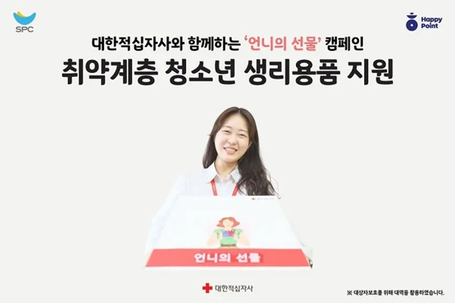 SPC그룹(회장 허영인)과 대한적십자사(회장 김철수)가 공동으로 취약계층 청소년의 생리용품을 지원하는 ‘SPC해피쉐어 캠페인’이 고객의 성원 끝에 조기종료됐다.