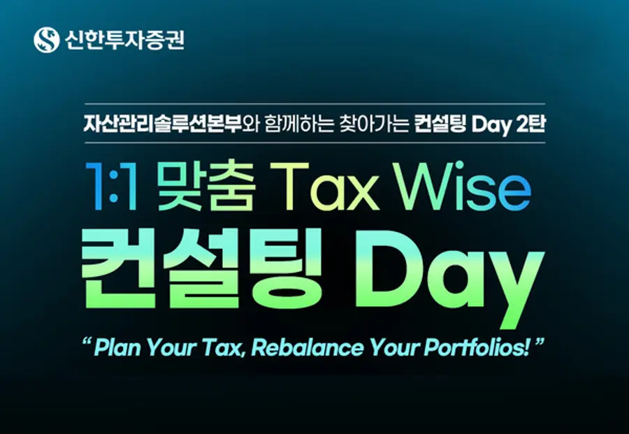 신한투자증권은 VIP 고객을 대상으로 오는 12월 29일까지 ‘1:1 맞춤 Tax Wise 컨설팅 Day’를 실시한다고 9일 밝혔다.