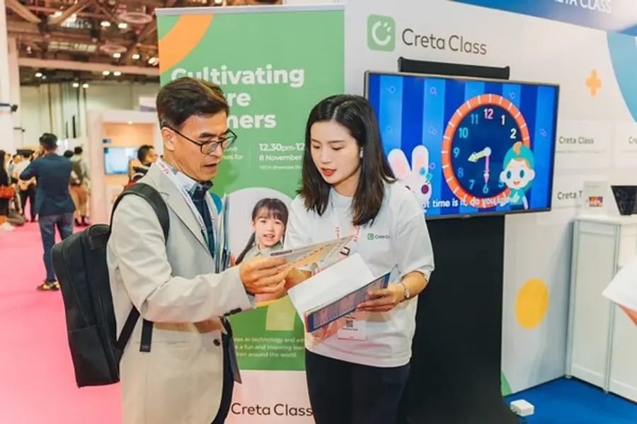 크레타클래스가 ‘에듀테크 아시아 2023’에 참가해 사고력 수학, 원어민 영어 앱 서비스 등 AI 기술 기반 인터랙티브 교육 솔루션에 대해 호평을 받았다.