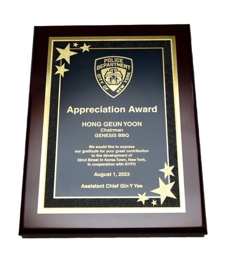 이에 BBQ는 NYPD 경찰청 부청장으로부터 치안 발전에 기여한 공로를 인정받아 감사패를 받았다.