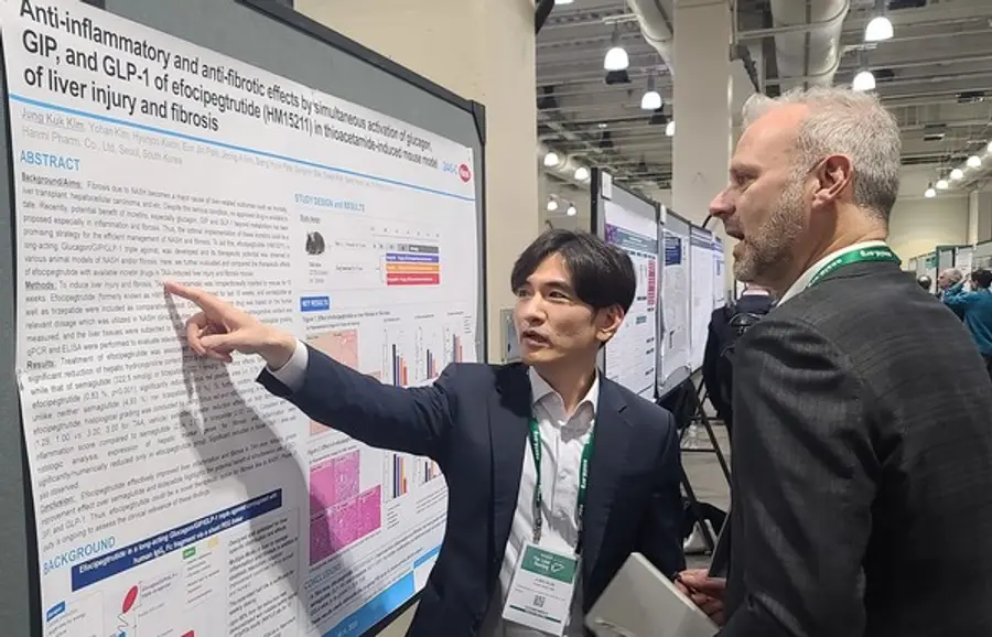 한미약품은 에포시페그트루타이드(efocipegtrutide, LAPSTriple agonist)의 ‘간 섬유화’ 직접 개선 효능을 확인한 연구 결과를 미국간학회에서 발표했다고 15일 밝혔다.