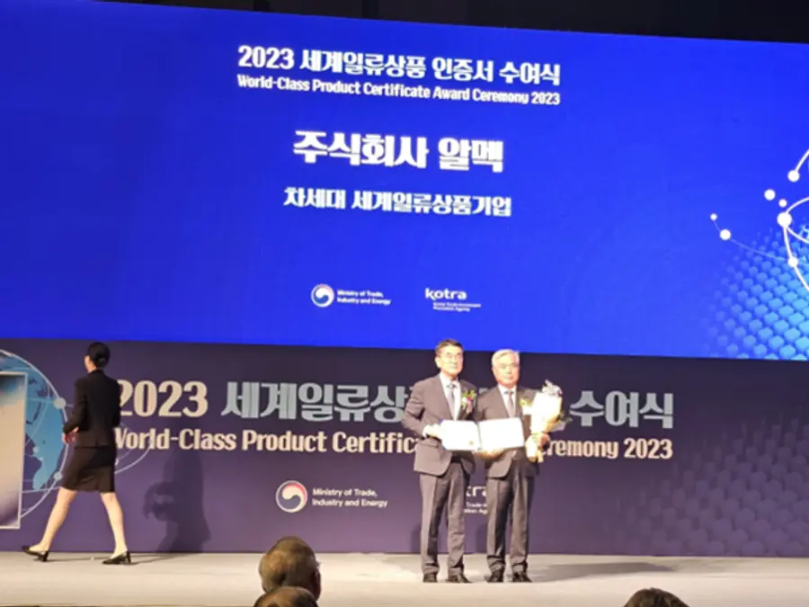 세계 일류상품은 수출활성화를 위해 산업통상자원부와 대한무역 투자진흥공사가 우수상품과 기업을 인증하는 사업이다. 세계시장 점유율 5위이내 및 5%이상에 드는 품목인 ‘세계 일류상품’과 7년이내 세계일류상품 진입가능품목인 ‘차세대 세계일류상품’으로 구성된다. 알멕은 지난 4월 산업통상자원부가 주최한 2023년 월드클래스 기업으로 선정된 이후 차세대 일류상품기업으로도 인증되어 알멕의 기술수준은 지속적으로 인정받고 있다.