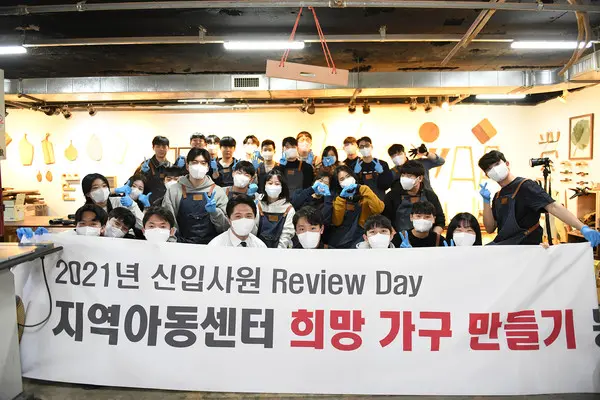 이번 기부는 입사 2년차 신입직원 대상 교육 프로그램인 ‘리뷰데이’의 일환으로 진행됐다. 2021년 입사한 직원 33명이 참여해 지난 10일 용산구 소재 공방에 모여 아동용 책장 11개를 제작했다. 제작된 책장은 지난주 영등포 디모데지역아동센터에 기부됐다.