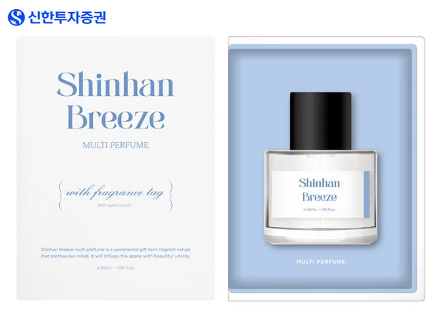 신한투자증권은 11월부터 고객용 신한브리즈 멀티퍼퓸을 출시해 지점에 방문하는 고객들에게 사은품으로 제공하고 있다.