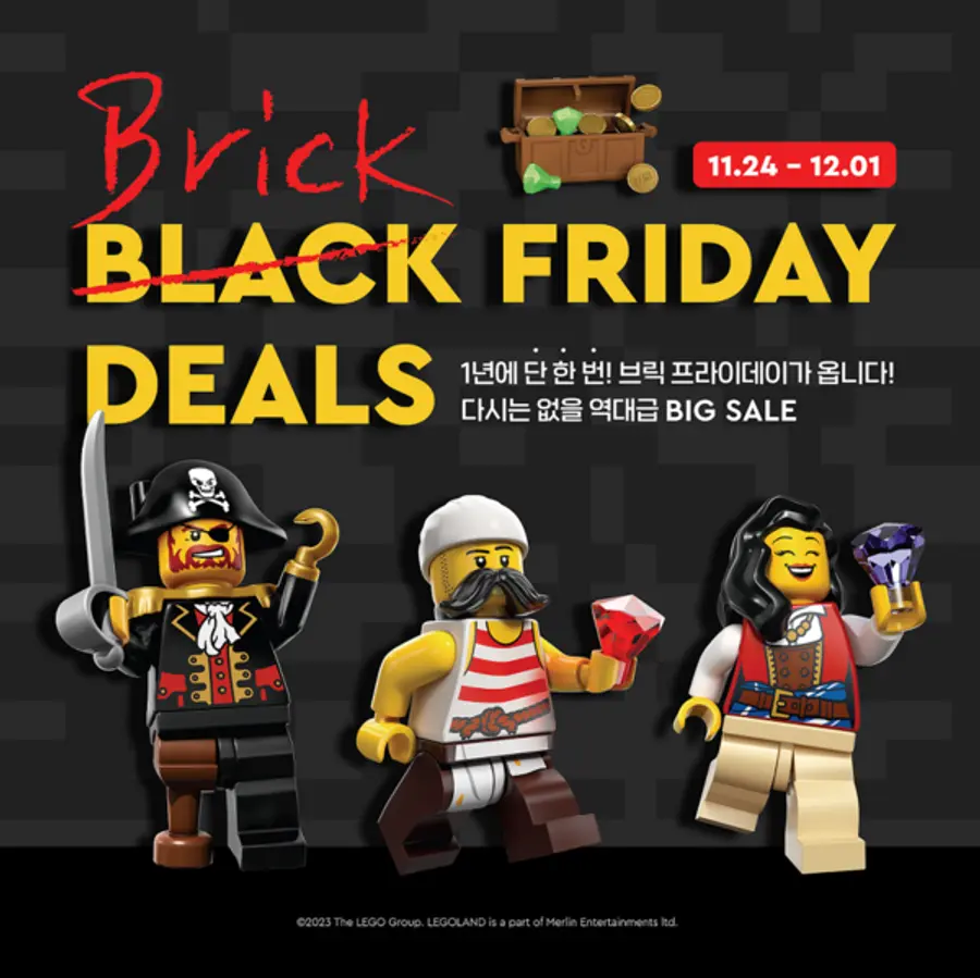 레고랜드 호텔도 브릭 프라이데이를 맞이하여 11월 24일부터 12월 1일까지 최대 28%의 할인이 적용된 프로모션을 진행한다. 이번 프로모션 기간 동안 ‘코지 윈터 슬립오버’, ‘윈터 파크 2일 이용권 패키지’, ‘조식 패키지’ 총 3가지의 레고랜드 호텔 패키지가 할인 적용되며 투숙 가능한 기간은 12월1일부터 내년도 3월31일까지이다.