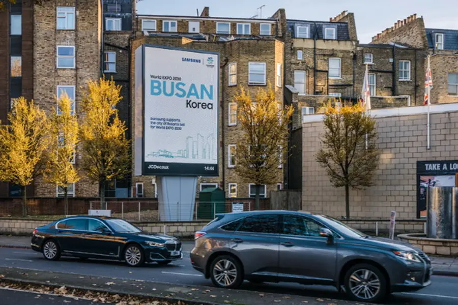 삼성전자는 각국 대사관과 관광명소들이 위치한 나이츠브리지, 켄싱턴 등 런던 주요 도심에서 최근 새로운 부산엑스포 옥외광고를 진행했다고 24일 밝혔다.