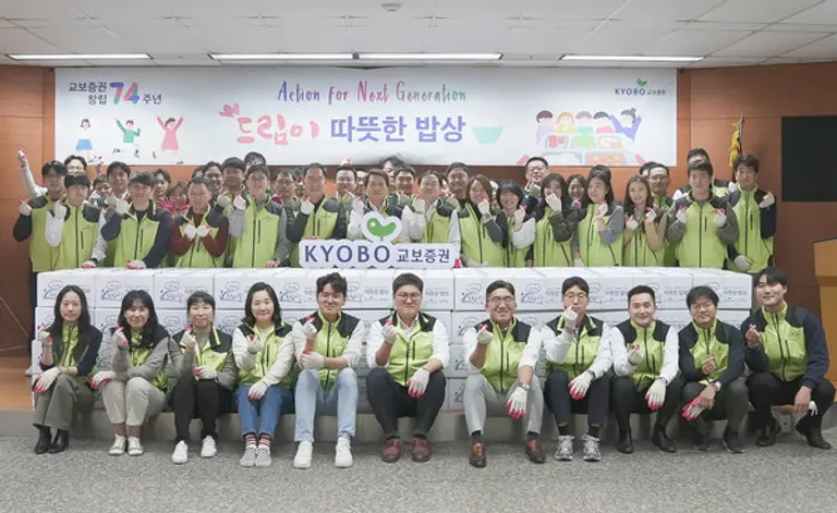 한편 교보증권은 연말까지 릴레이 봉사활동을 진행한다. 자립준비청년을 지원하는 장학금 전달 ‘드림업(Dream up)’활동과 상록보육원, 서울성모원 등 12곳 지정복지단체에 ‘사랑의 김장김치’를 전달할 예정이다.