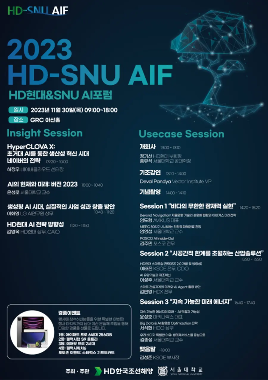 HD현대 글로벌R&D센터(GRC)에서 열린 이날 행사에는 정기선 HD현대 부회장과 홍유석 서울대학교 공대학장을 비롯, 국내외 산학연 AI 전문가들이 참석했다.