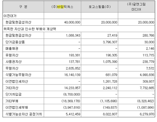 문제는 인수 당시 바람픽처스의 총부채가 357억원으로 총자산 323억원을 웃돌아 계속적 기업으로서의 존립 가능성이 불투확실한 상태였다.