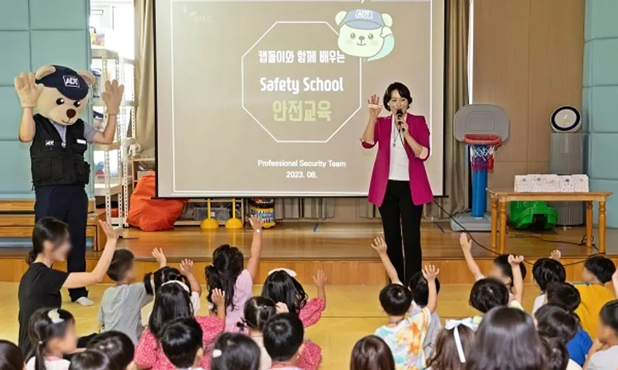 SK쉴더스 경호팀은 최근 경기도 파주와 경상북도 구미에 위치한 어린이집 등 총 3 곳에서 원아 170명을 대상으로 어린이 생활 안전교육을 진행했다. 어린이들이 쉽고 재밌게 생활 안전습관을 기를 수 있도록 자사의 ADT캡스 마스코트인 ‘캡돌이’와 함께 OX퀴즈를 진행하며 각종 위험요인과 대처요령을 설명했다.