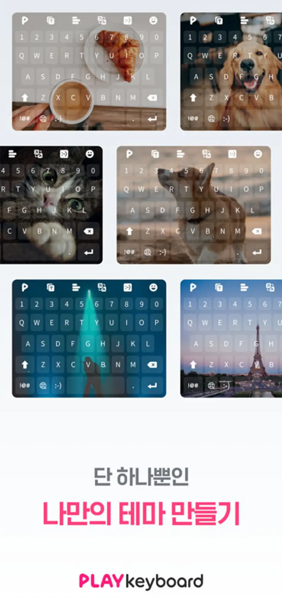 '나만의 테마 만들기'는 사용자가 좋아하는 사진 또는 움직이는 GIF 이미지를 키보드 배경에 넣어, 자신만의 모바일 키보드 디자인을 제작할 수 있는 기능이다.