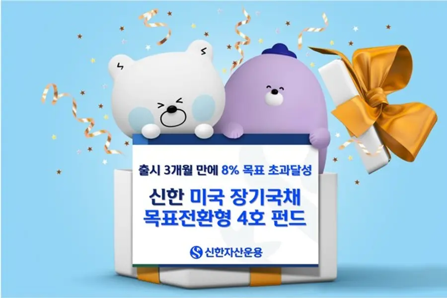 신한자산운용은 ‘신한 미국장기국채 목표전환형펀드 4호’가 목표수익률 8%를 초과했다고 11일 밝혔다.