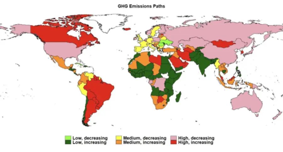 변화의 속도는 국가별로 다를 수 있지만, 저탄소 경제로의 변화는 기술적으로나 경제적으로 실현 가능하다는 지적이다. 전 세계 국가를 2023년 1인당 온실가스 배출 수준이 높음, 중간, 낮음 등 세 가지 범주로 나누었을 때 감소가 눈에 띄게 늘었다.