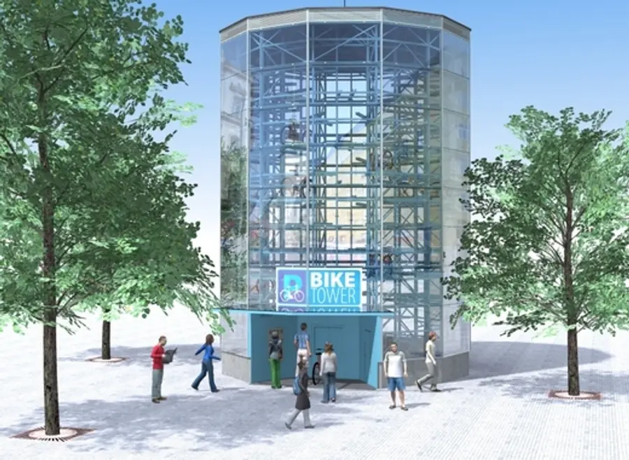 자동 자전거 주차장은 무엇일까? 이 건물은 높이가 11 미터인 큰 타워로, 24 시간에 10 센트의 비용으로 자동으로 118 대의 자전거를 수용할 수 있는 규모다.