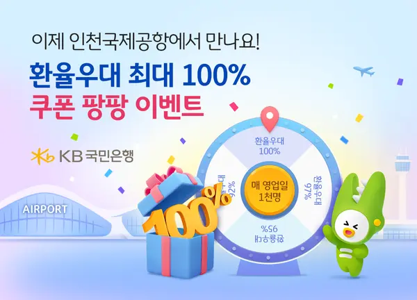 KB국민은행이 내년 1월 초 인천국제공항 입점을 기념해 환율우대쿠폰 이벤트를 실시한다.