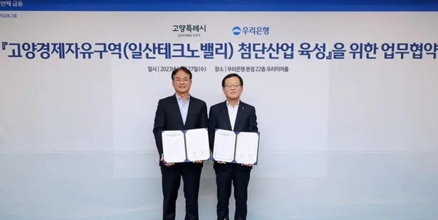 우리은행은 전일 고양특례시와 ‘고양경제자유구역 첨단산업 육성을 위한 협약’을 체결했다고 28일 밝혔다.