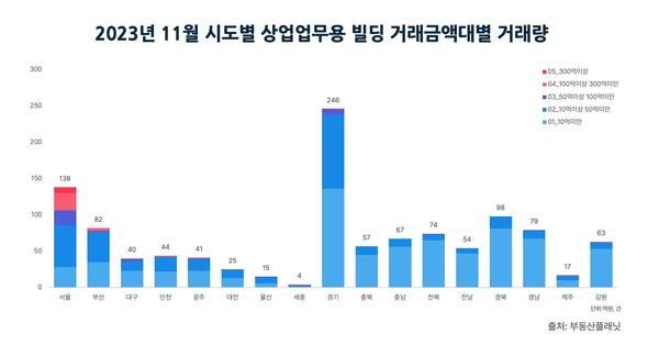 부동산플래닛 정수민 대표는 "10월에 이어 11월에도 전국 상업업무용 빌딩 거래량은 직전월 대비 늘었으나 거래금액은 6천억 가까이 줄어들었다"며 "고금리 기조 유지와 부동산 프로젝트 파이낸싱(PF) 부실 여파가 금융권까지 번질 수 있다는 우려로 시장 불안감이 고조되고 있는 만큼 그 어느때보다도 신중한 투자 접근이 필요하다”고 전했다
