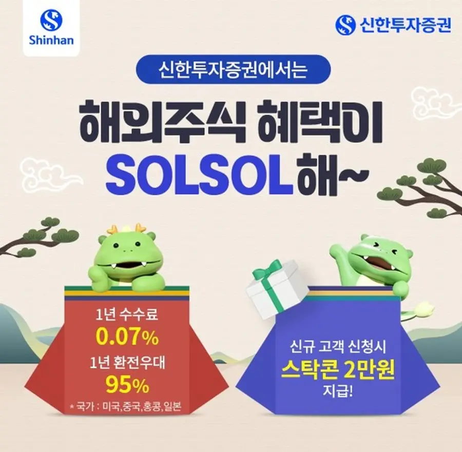 신한투자증권(대표이사 김상태)은 2024년 새해를 맞이하며 ‘해외주식 혜택이 SOLSOL해’ 이벤트를 6월 30일까지 실시한다고 5일 밝혔다.