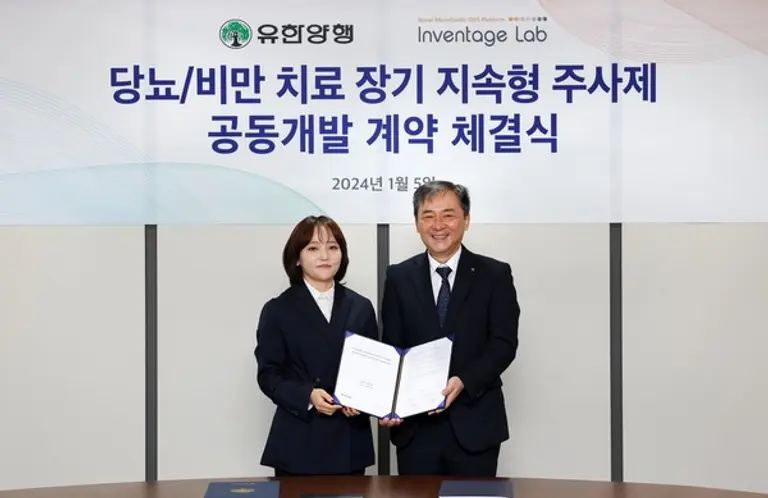인벤티지랩은 유한양행과 비만/당뇨 치료 장기지속형 주사제에 대한 공동개발 계약을 체결했다고 5일 밝혔다.