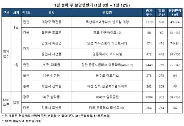 5일 부동산 전문 리서치 업체 리얼투데이에 따르면 1월 둘째 주 전국 7곳에서 총 2827가구(오피스텔 포함, 행복주택 제외)가 청약을 접수받는다.
