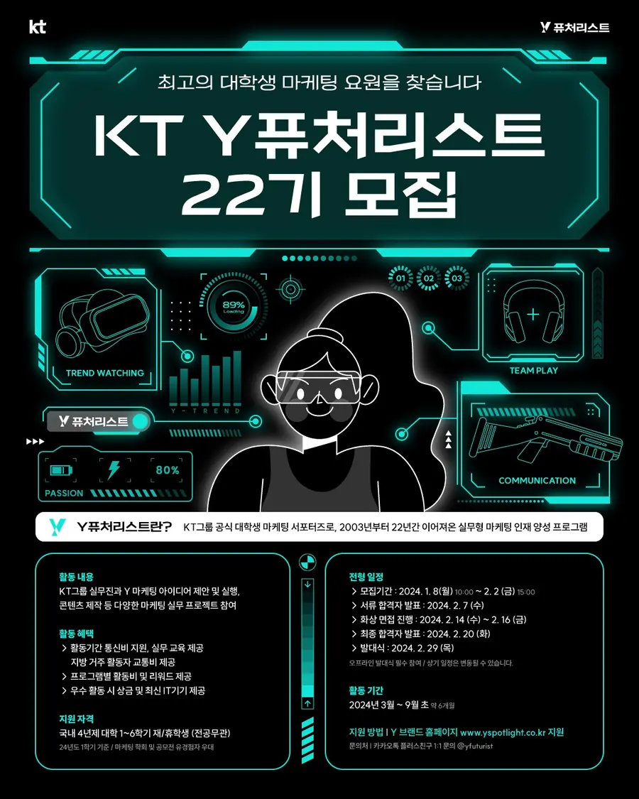 Y퓨처리스트는 올해로 22년차를 맞은 KT그룹의 공식 대학생 마케팅 서포터즈 프로그램이다. 지난 2003년에 시작해 21년 동안 약 4860명이 넘는 학생들이 참여했다.