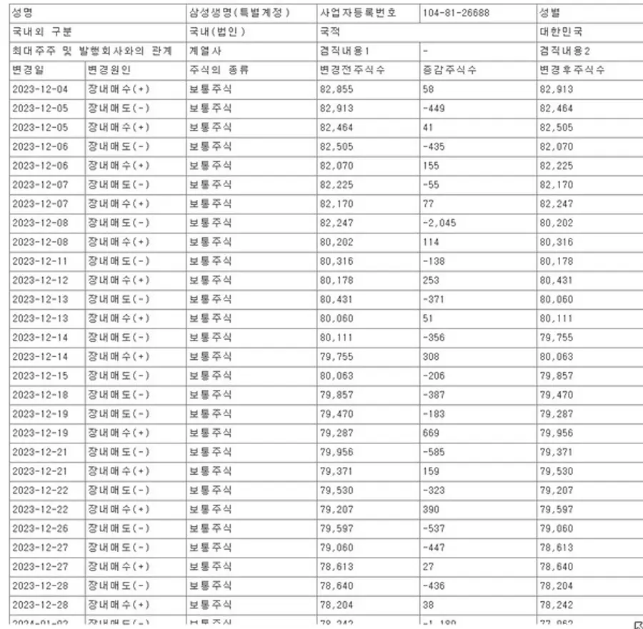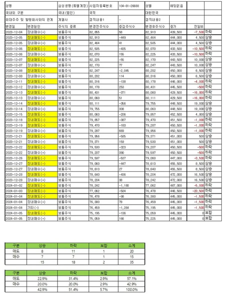 10일 금융감독원 전자공시시스템에 따르면, 삼성생명은 지난해 12월4일부터 올해 1월5일까지 계열사인 삼성SDI 주식을 총 35회 사고 팔았다.