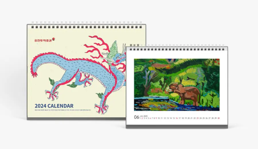 유진투자증권(대표이사 유창수, 고경모)은 발달장애인 직원이 직접 그린 유화 작품을 활용하여 2024년 탁상용 달력을 제작하고 내방 고객들에게 배포한다고 12일 밝혔다.