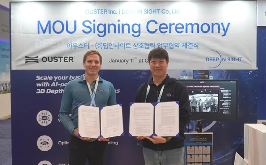 인공지능(AI) 기반 3D 센싱 솔루션 스타트업 딥인사이트는 지난주 열린 ‘CES 2024’에서 미국 라이다 기업 아우스터(OUSTER)와 전략적 기술 협력 업무협약(MOU)를 맺었다고 17일 밝혔다.
