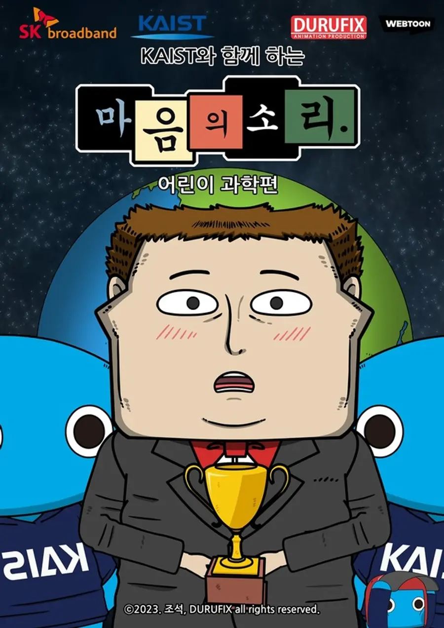 총 8편으로 이뤄진 시리즈는 네이버 최장수 인기 웹툰인 ‘마음의 소리’ IP(지적재산)를 바탕으로 제작됐다. 애니메이션 제작사 두루픽스, SK브로드밴드, KAIST가 제작에 직접 참여했다. 과학과 우주 상식이 부족한 ‘마음의 소리’ 캐릭터들이 KAIST 선생님을 만나 즐겁게 개념을 익히는 콘텐츠다. KAIST 대표 마스코트인 넙죽이 캐릭터도 로봇으로 등장한다.
