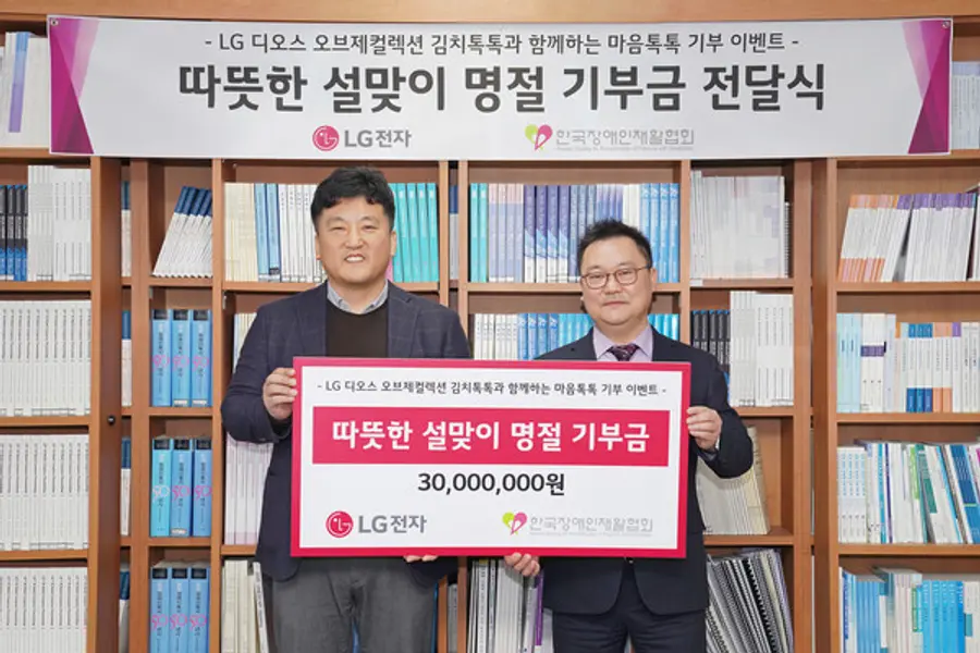 또한 LG전자 키친솔루션마케팅담당은 23일 서울 서초구에 위치한 한국장애인재활협회에서 기부금 3000만원을 전달했다. 한국장애인재활협회는 기부금으로 쌀과 식료품 세트 등을 구매해 전국 17개 시도 장애가정청소년 가정 228곳에 전달할 예정이다.
