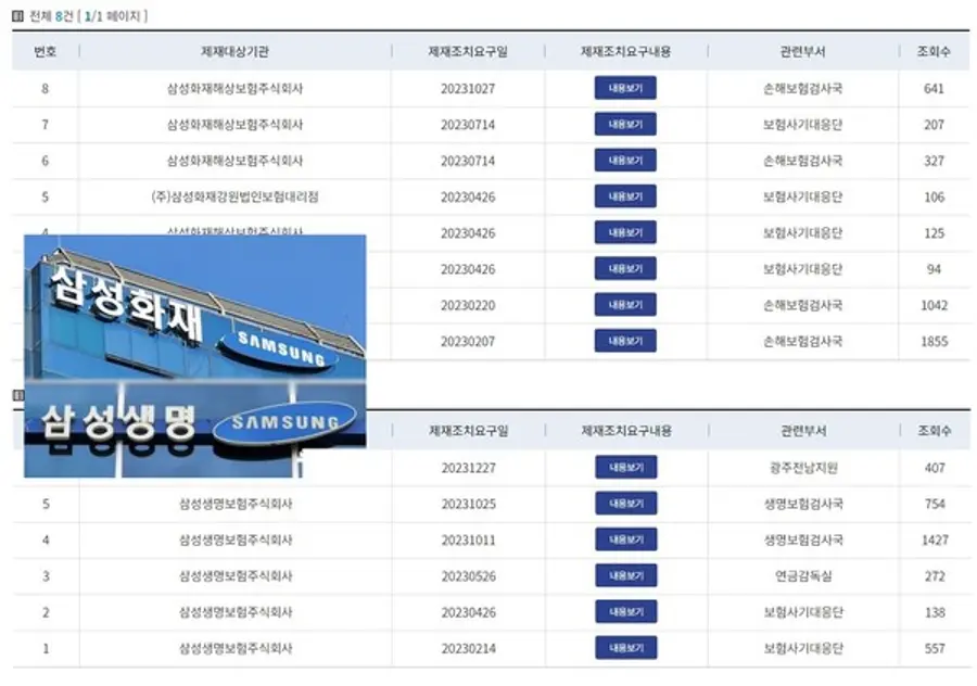 삼성생명과 삼성화재가 국내 생·손보업계 1위 사업자라는 위상에 걸맞게(?) 지난해 금융감독원으로부터 가장 많이 제재받은 것으로 조사됐다. 특히 동일한 사유로 반복해서 제재받은 경우도 발견돼, 사측의 리스크 관리 부실 징후도 엿보인다.