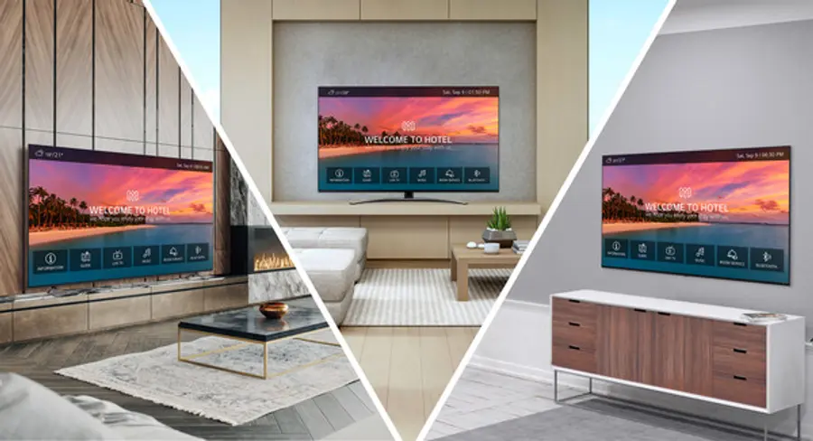 호텔TV, 사이니지에 적용할 콘텐츠를 제작하는 솔루션은 UX/UI가 친화적이어서 초보자도 쉽게 사용 가능하다. 사이니지 이상 상태와 에너지 사용량 등을 실시간으로 모니터링하고 원격 제어해 효율성을 높이는 솔루션도 있다.