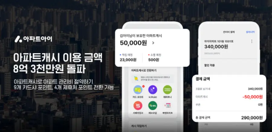 아파트아이는 30일 “지난해 1년간 약 2만 명이 아파트캐시로 관리비를 납부했으며, 총 8억3000만원 이상을 절약했다'고 밝혔다.
