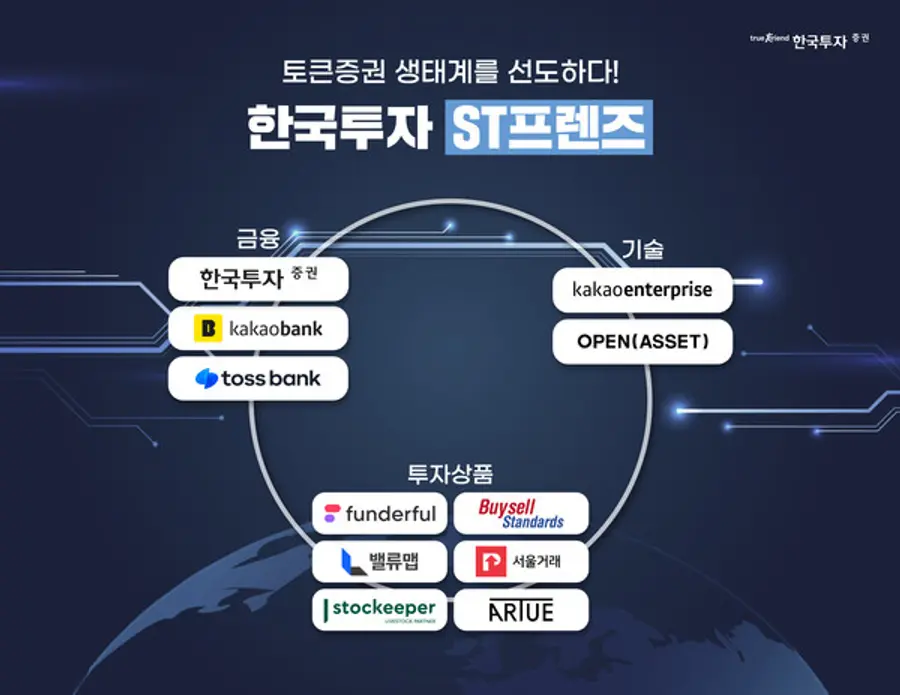 한편, 지난해 한국투자증권이 카카오뱅크·토스뱅크 등과 손잡고 설립한 토큰증권 협의체 '한국투자 ST 프렌즈'에는 현물 조각투자 플랫폼 '피스(PIECE)'를 운영하는 '바이셀스탠다드', 문화 콘텐츠 투자 플랫폼 '펀더풀', 토지·건물 거래 플랫폼 '밸류맵', 비상장 주식 거래 플랫폼 '서울거래' 등 유수의 기업이 참여 중이다.
