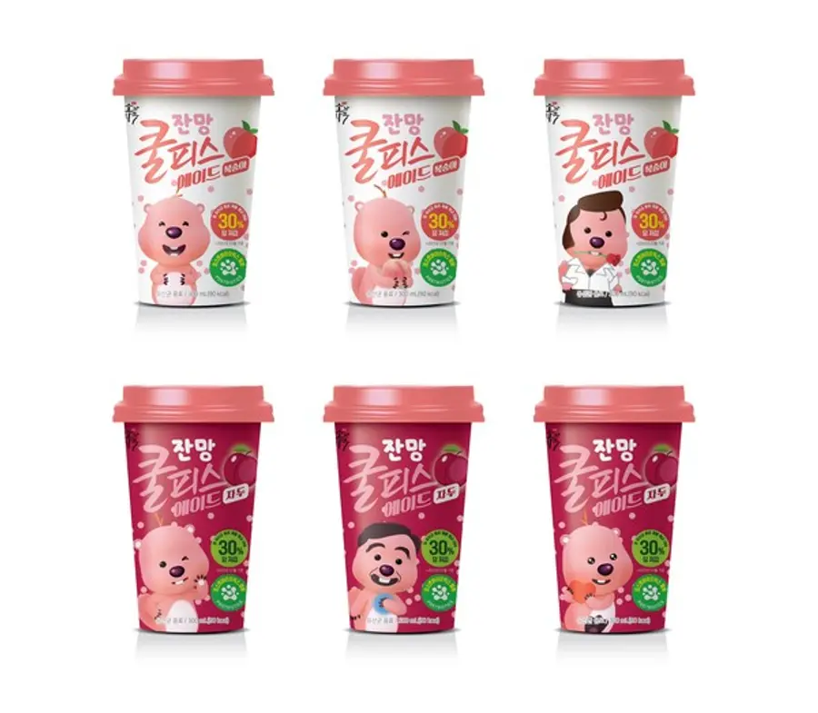 이번 협업 제품은 MZ 세대에게 친숙한 잔망루피 캐릭터를 신제품 ‘쿨피스 에이드’ 패키지에 그려 넣었다. 잔망루피의 귀엽고 익살스러운 표정이 각각 그려진 6가지 디자인으로 구성됐다.