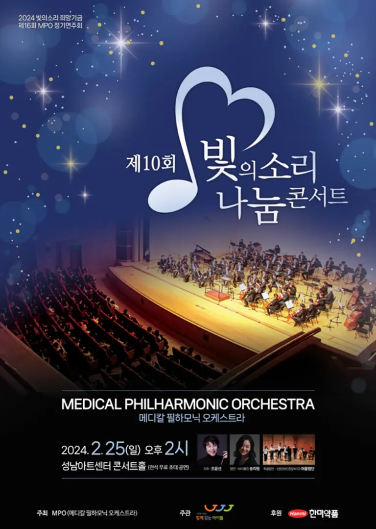 MPO가 주최하고 한미약품이 후원하는 빛의소리 나눔콘서트는 장애아동 예술교육 기금 조성을 위한 자선 음악회로, 전석 무료 공연으로 진행된다.