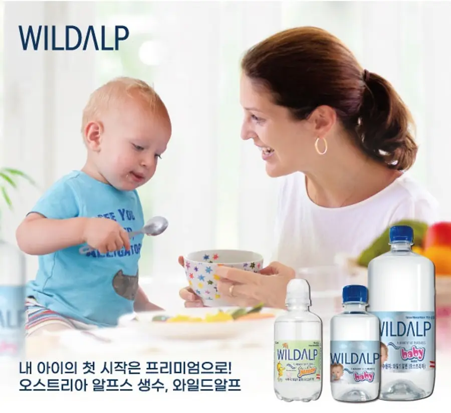 와일드알프는 세계적인 청정지역 남알프스 산맥의 와일드알펜에서 취수한 물로 천연산소와 아기에게 꼭 필요한 미네랄을 함유한 베이비 워터이다.