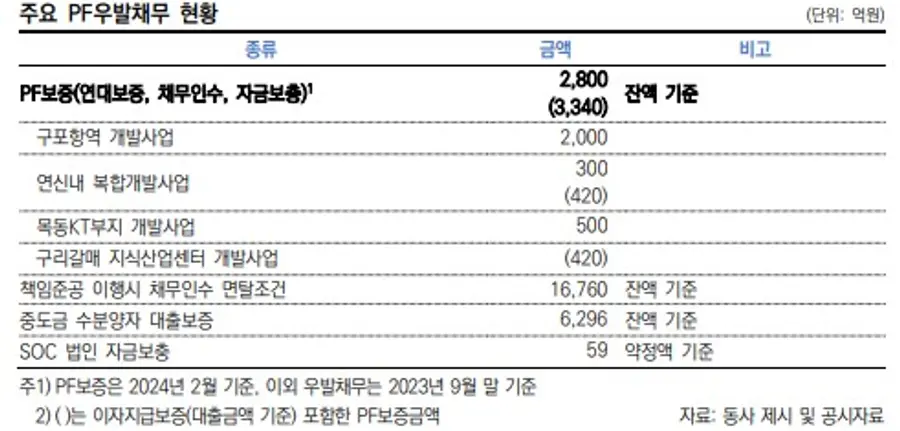 구포항역사 개발 PF 외에 연신내 복합개발사업과 목동KT부지 개발사업 PF 역시 복병이다.