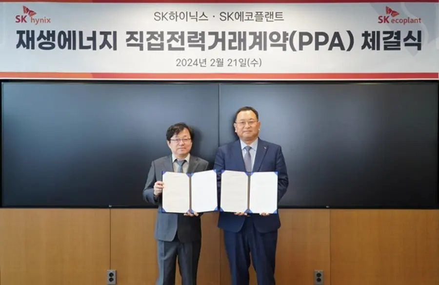SK에코플랜트와 SK하이닉스는 재생에너지 공급을 위한 직접전력거래계약(PPA: Power Purchase Agreement)을 체결했다고 21일 밝혔다.