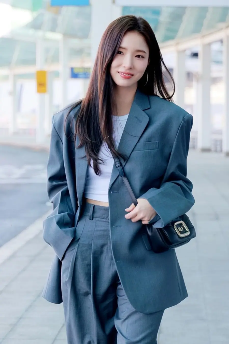 배우 신세경이 그레이 컬려의 슈트와 블랙 컬러의 백으로 고급스러우면서도 센스 있는 공항패션을 선보여 눈길을 끌었다.